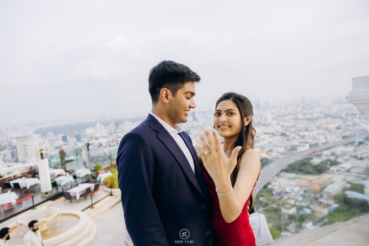 Planning to propose in Bangkok? Imagine standing on the rooftop of Lebua at State Tower, surrounded by breathtaking skyline views, golden sunsets, and the sparkle of the Chao Phraya River. Your heart races, the city lights glow — and in that magical second, you ask the most beautiful question: