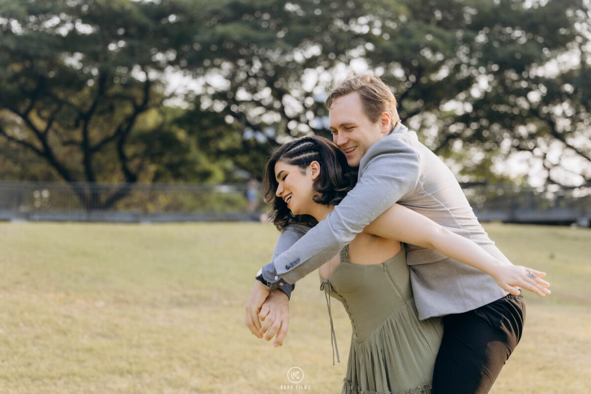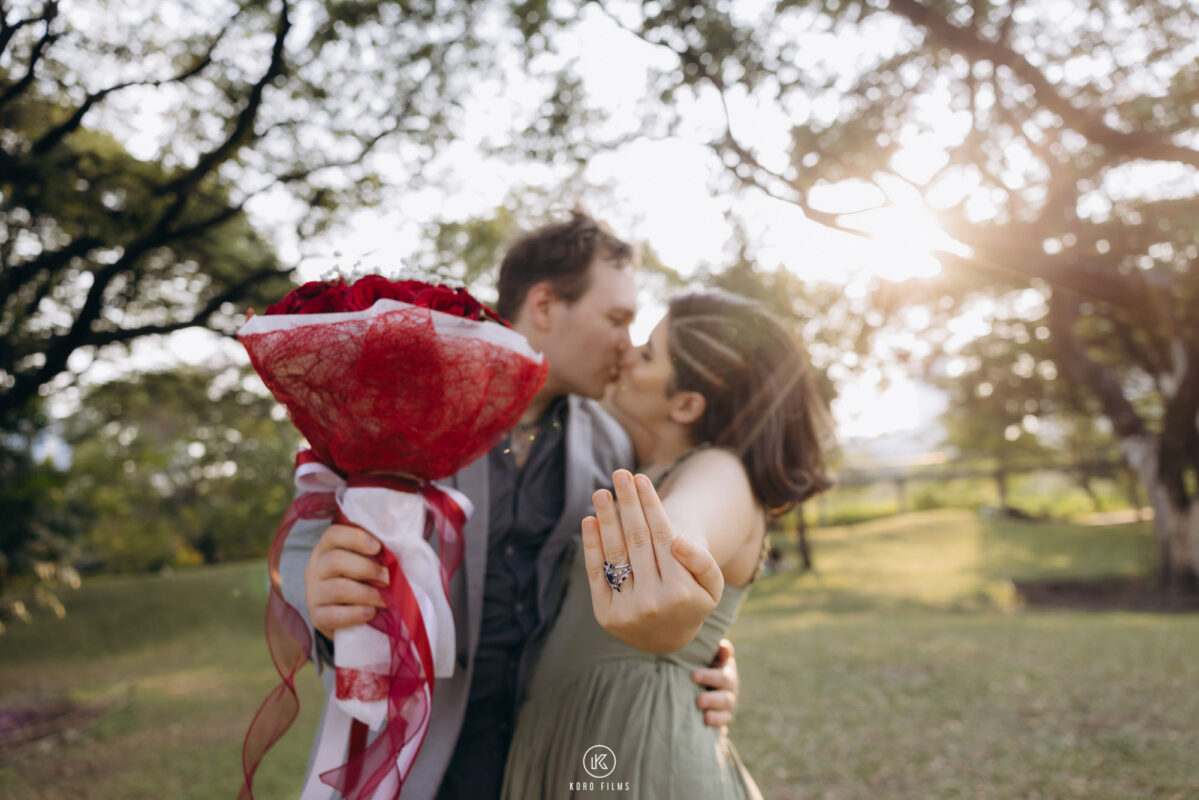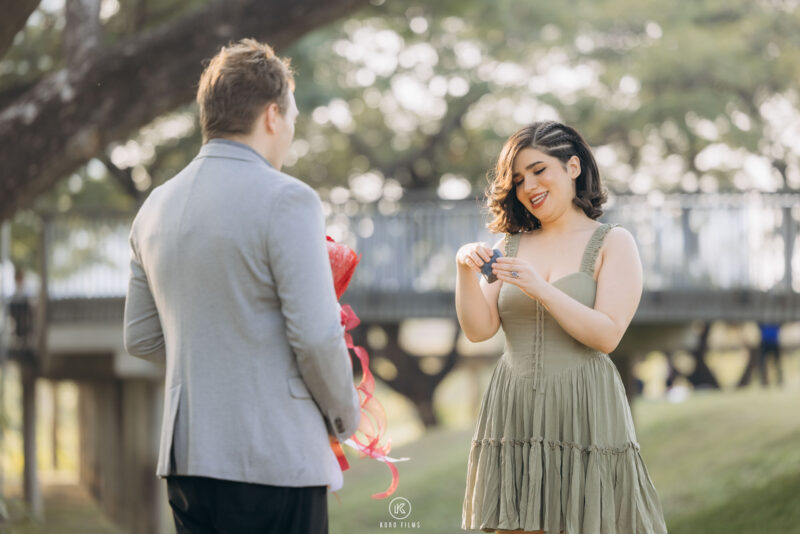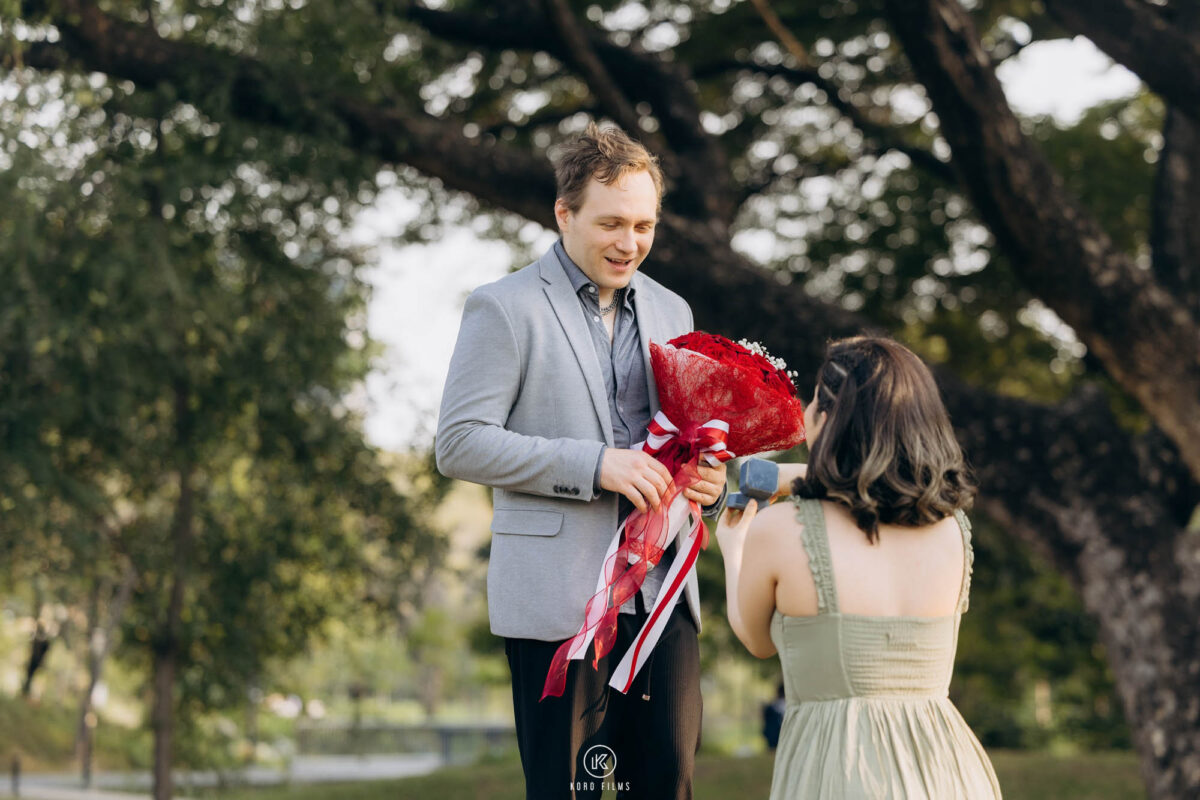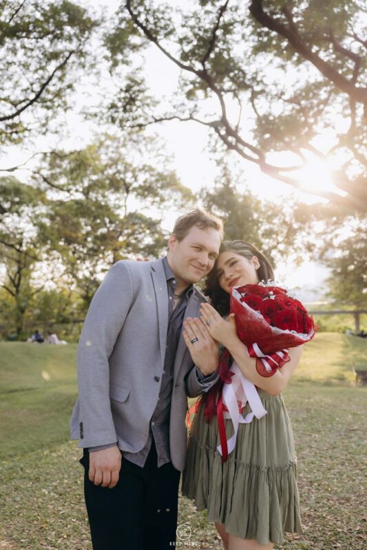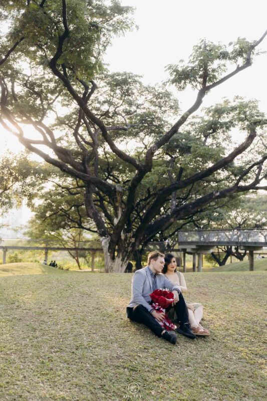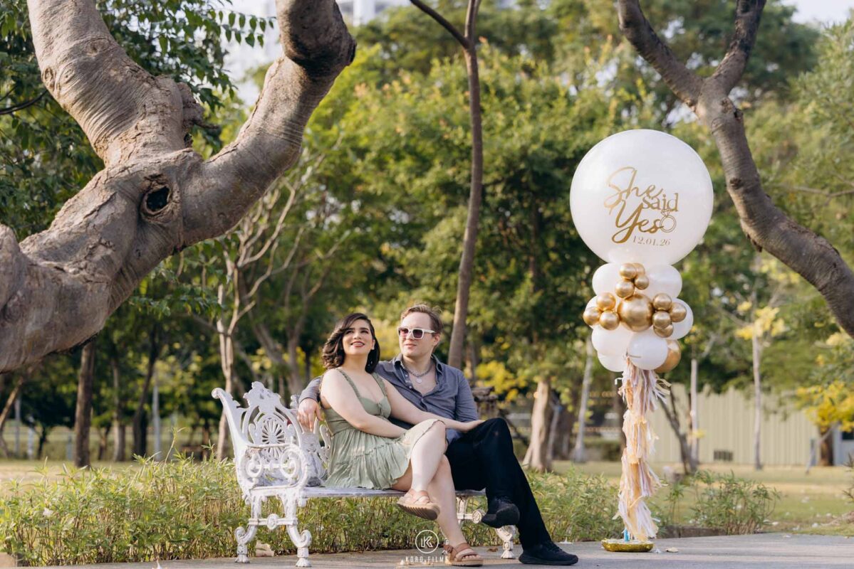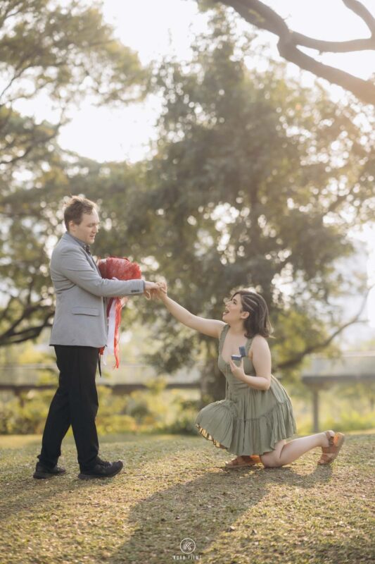 Unlike crowded tourist spots, Benjakitti Park provides space and flexibility. You can choose a quiet corner for an intimate proposal or a dramatic skyline backdrop for a cinematic surprise.
