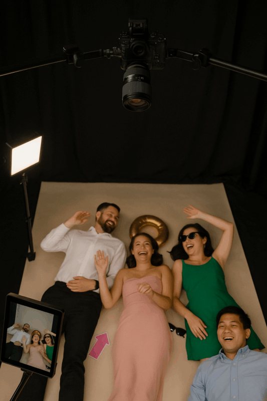 A Top View Photo Booth is a modern and stylish photography setup where the camera is mounted overhead, typically pointing directly downward. This unique bird’s-eye perspective creates fun, creative, and visually appealing shots that stand out on social media and in photo albums. Whether it’s a wedding, corporate event, product launch, or birthday party, this overhead camera angle provides a fresh, cinematic take on traditional photo booths.
